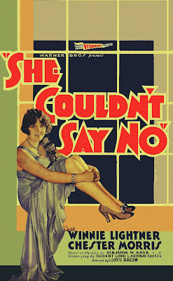 The following publicity placement for the now presumed-lost 1930 film "She Couldn't Say No" was heralded as being written by the film's star, Winnie Lightner, herself. While doubtful at best, the piece does serve to give us an idea of the filmed that can't easily be gleaned otherwise: